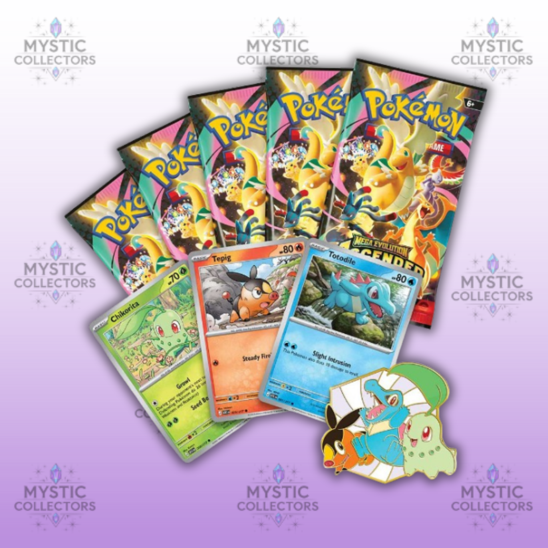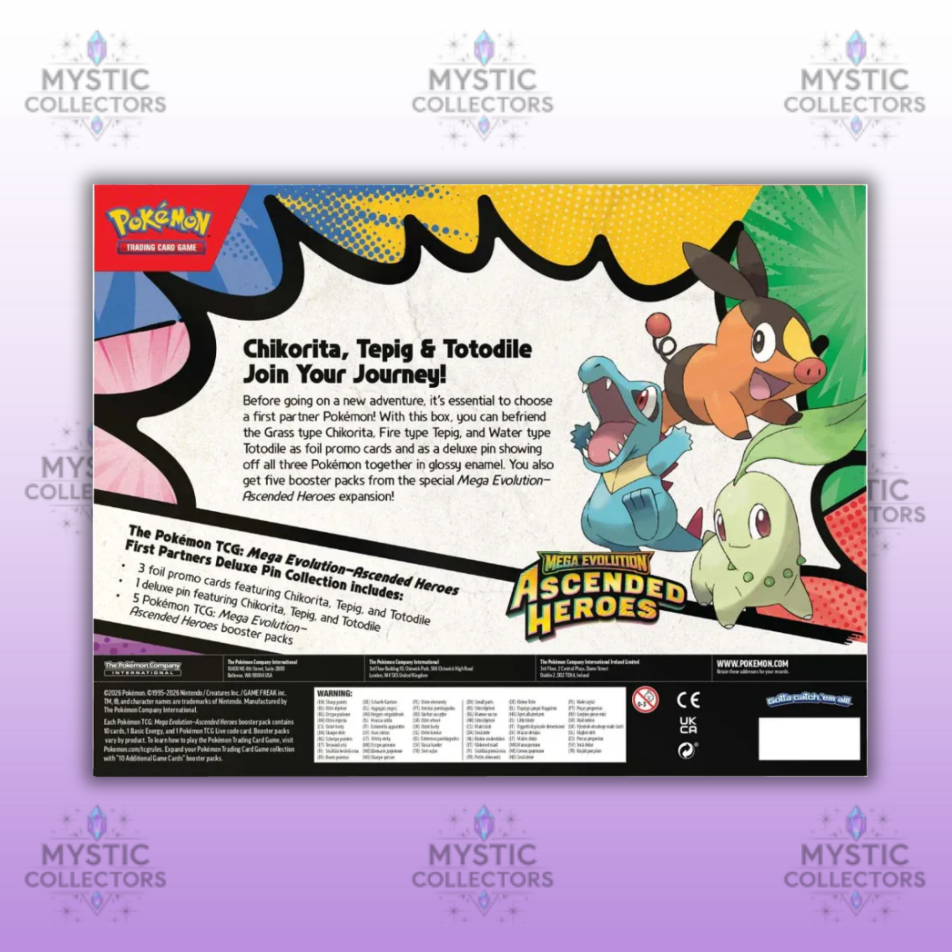 De Ascended Heroes – Deluxe Pin Collection biedt een unieke manier om je eerste partner-Pokémon te verzamelen. De set bevat foil promokaarten van Chikorita, Tepig en Totodile, samen met een deluxe pin waarop alle drie de Pokémon schitteren in glanzend emaille.